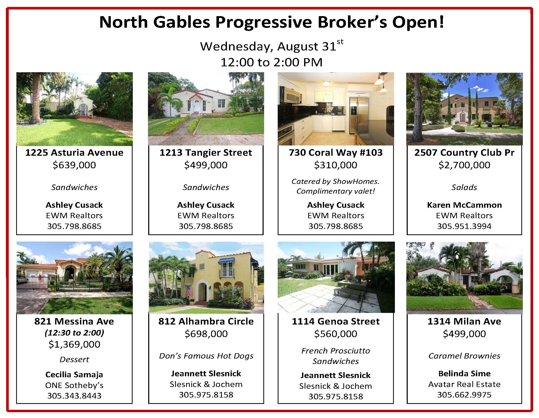 Come Visit our Open Houses in North Coral Gables Wednesday from 12:00 to 2:00!